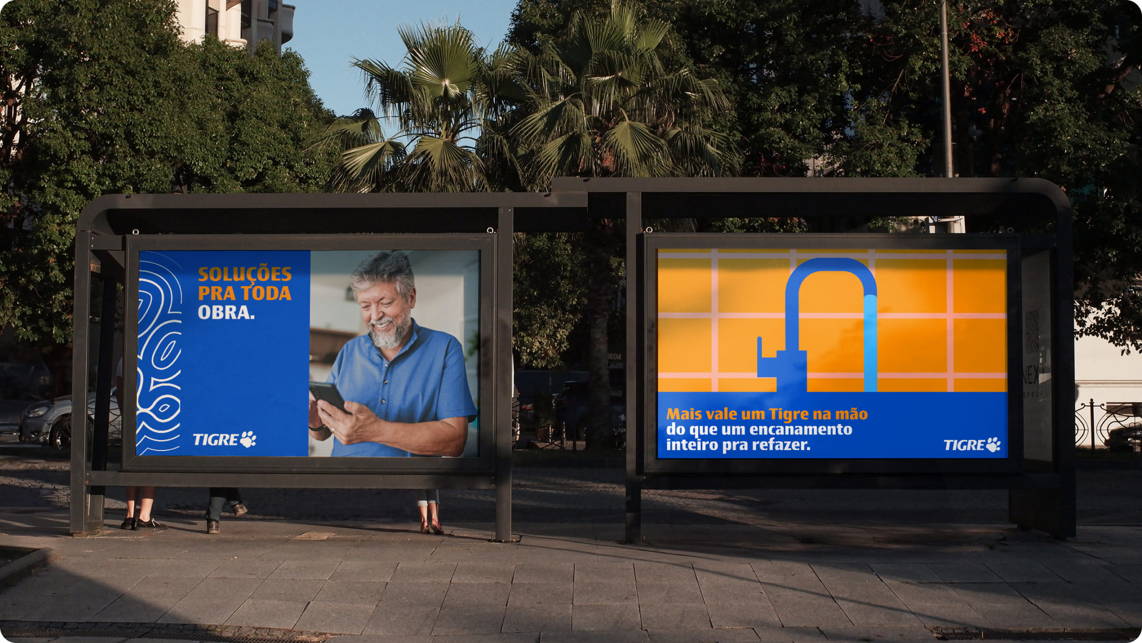 Os exemplos abaixo mostram aplicações corretas das ilustrações da Tigre, servindo como referência para manter consistência e alinhamento com a identidade da marca.